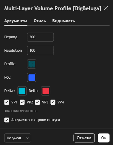 | Уровни POC | Отображение самых важных цен по объему для каждого слоя |