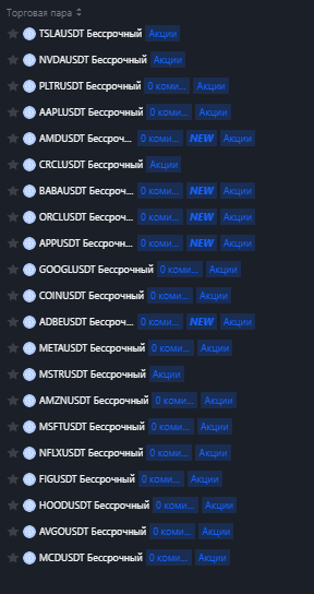 | 6 | CRCLXUSDT | Circle xStock | Эмитент стейблкоина USDC |